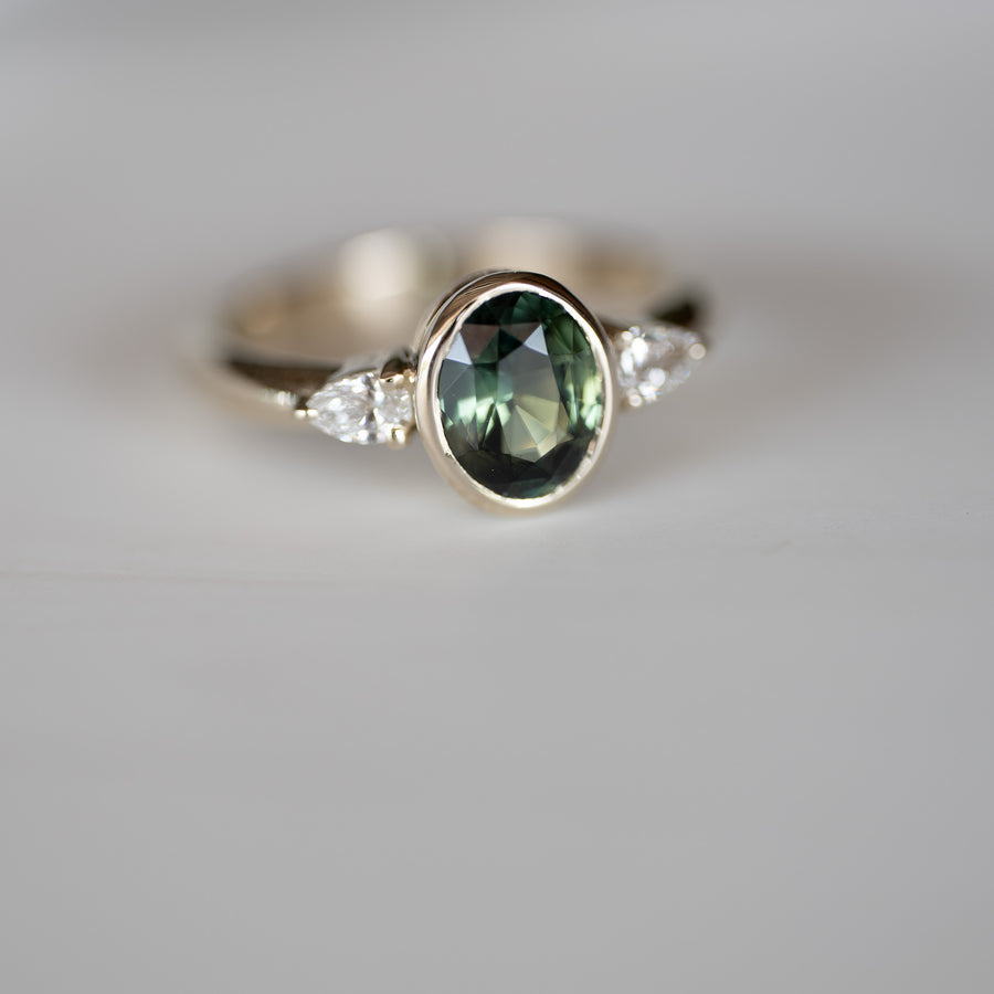 1.64 CT Oval Sapphire with Pear Side Stones